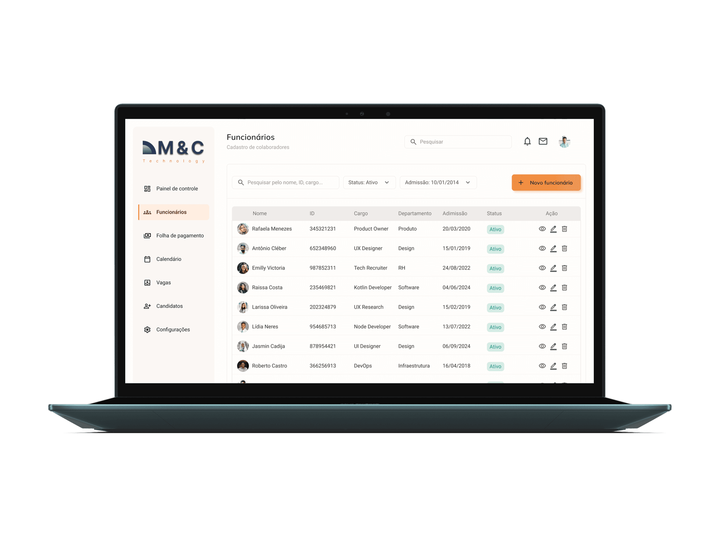 O objetivo desse projeto era desenvolver o design de um software de gestão de RH focado em otimizar a experiência de gestores e colaboradores.